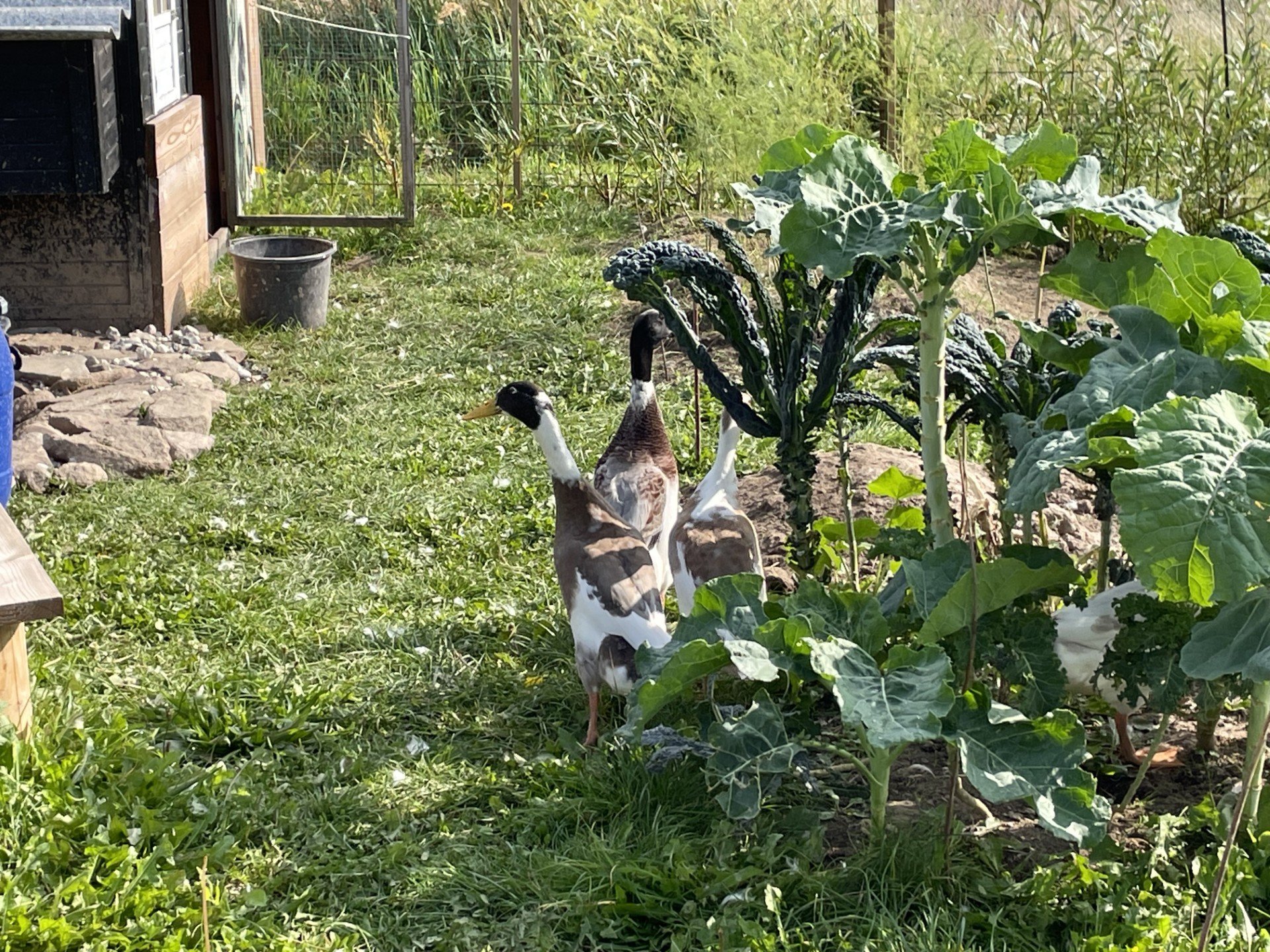 At hilse på løbeænderne, der hjælper med at holde dræbersnegle væk fra den ovale køkkenhave.